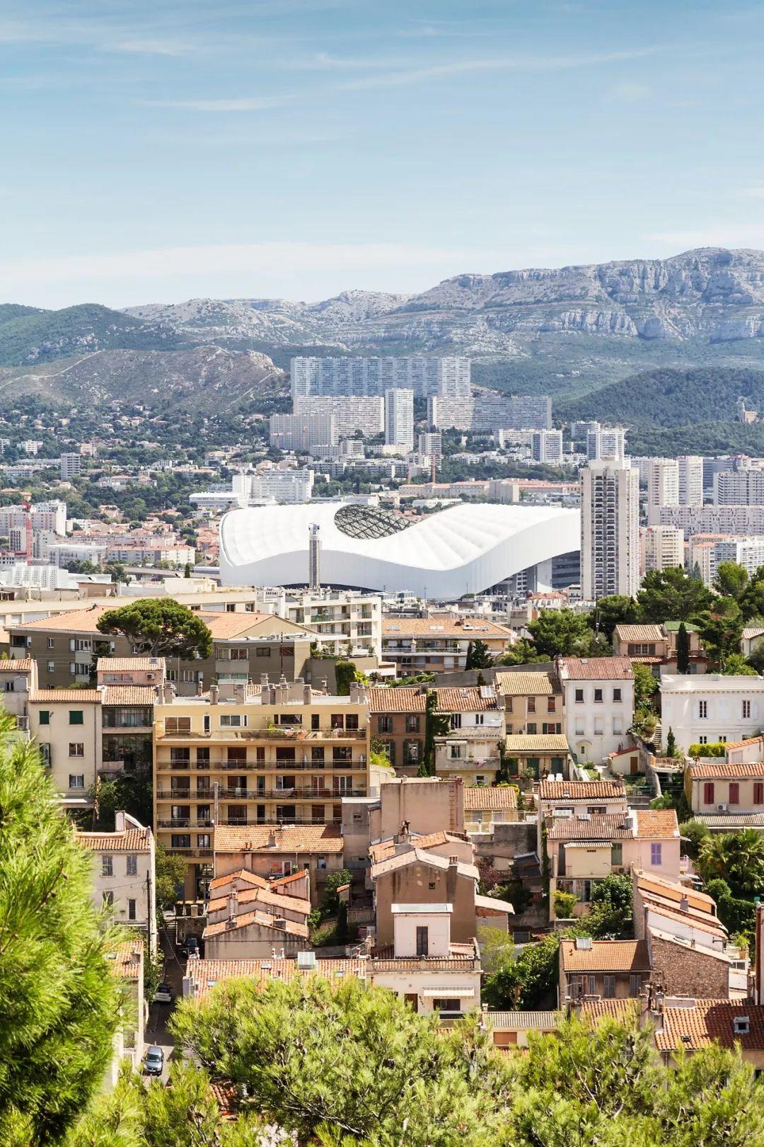 比如位于法国隆河河口省马赛市的马赛体育场又名韦洛德罗姆球场,是法国第二大体育场,也是2024年巴黎奥运会在该城市的两个比赛场馆之一,洁白的曲线形外观使其令人过目不忘。