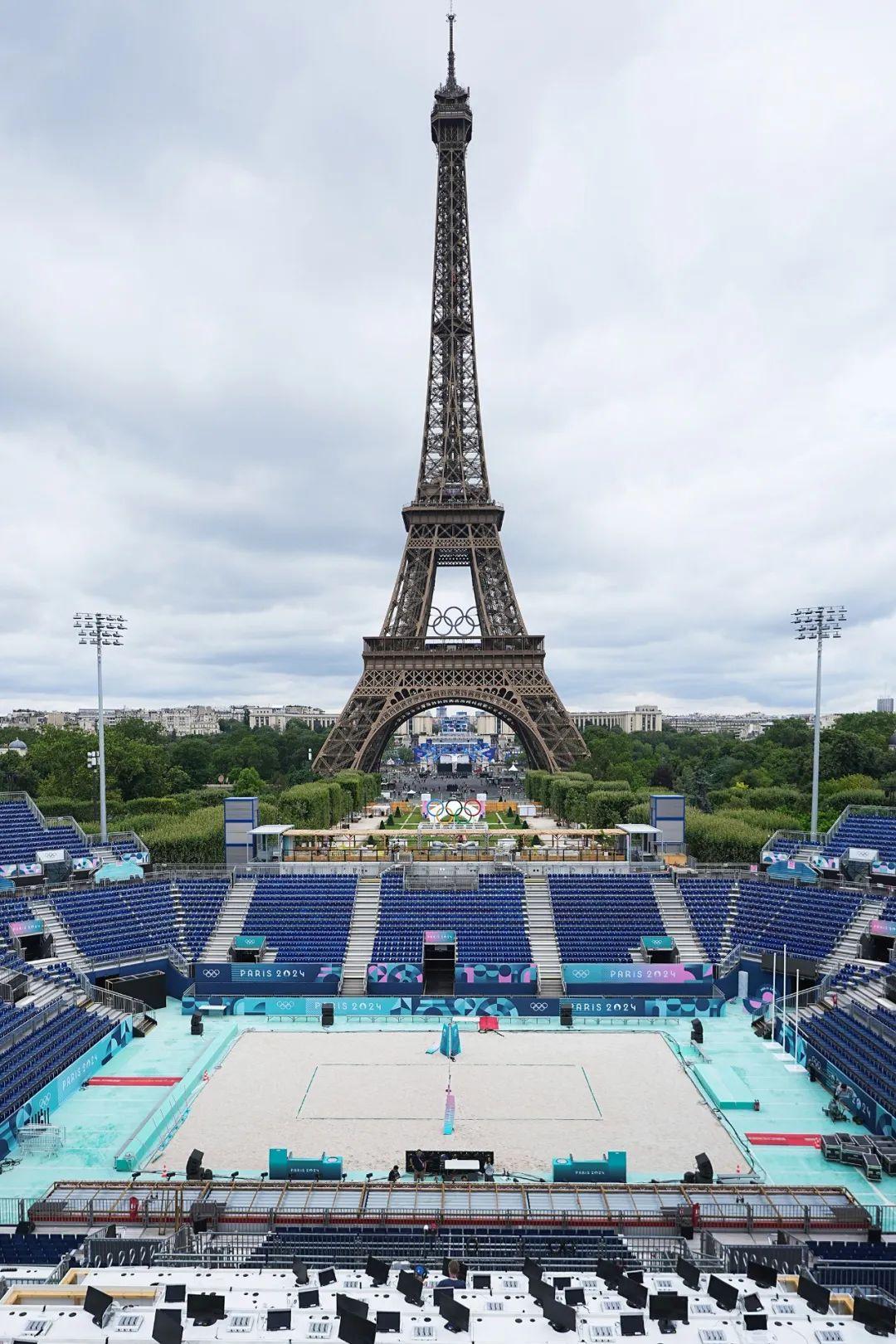 从申办奥运赛事的阶段开始,巴黎奥组委就提出了“Integrating sports into the fabric of the city”(将体育融入城市结构中)的理念,埃菲尔铁塔体育场就是对此理念的一个非常好的体现,在这里,容纳12860人的露天看台和近在咫尺的城市景观完美融合,为本届奥运会提供限定的观赛体验。体育场边,就是这座19世纪末法国工程师埃菲尔为纪念法国大革命100周年和庆祝世界博览会而建造的巍峨铁塔。这座铁塔在始建时曾受尽奚落,直到一战期间才因惊人高度正适于扮演无线电发射台 的角色而受到肯定,成为公认的巴黎最佳地标。