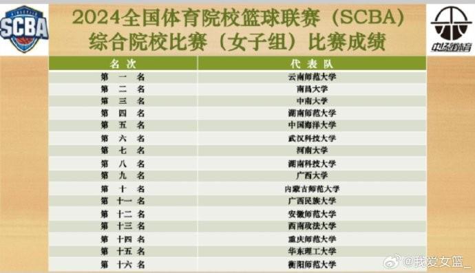 北京时间9月27日,2024年全国体育院校篮球联赛(SCBA)综合院校女篮决赛,云南师范大学以69-53战胜南昌大学夺得冠军。