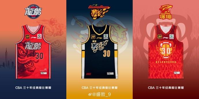 9月24日,媒体人“球圈赵探长”在社媒分享了广东男篮、广州男篮和四川男篮的CBA30周年纪念球衣。此前,博主“保护我方山东队”分享了山东男篮的纪念球衣。