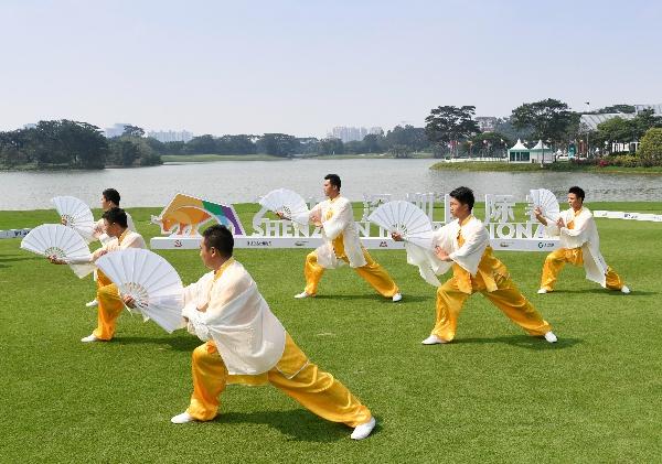 与前两届深圳国际赛一样,第三年的开幕式再度体现了鲜明的中国传统元素。开幕式上,赛会特意安排了扇子舞表演,此外,巴巴·沃森、李首民、八届欧巡赛冠军泰国球手通差·贾第、英格兰球手汤米·弗利特伍德和中国名将吴阿顺等多位球星在扇子写下“你的主场Your Home Course”的赛事口号,为深圳赛揭幕。