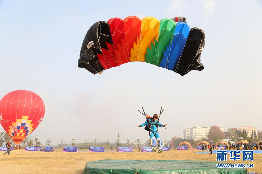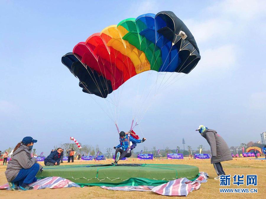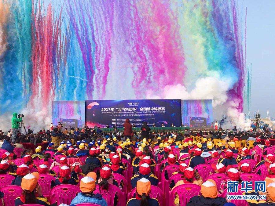 新华网荆门12月2日电(曾伟龙 熊东东)12月2日,2017年全国跳伞锦标赛在湖北荆门爱飞客航空小镇飞行家国际跳伞基地开幕,来自北京代表队、空军代表队、飞行家代表队等10支代表队的130余名跳伞运动员将在这里展开空中竞技。