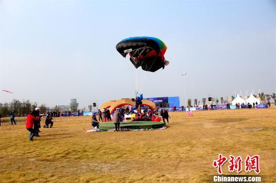 中新网荆门12月2日电 (钟欣 熊东东)12月2日,2017年全国跳伞锦标赛在荆门爱飞客航空小镇飞行家国际跳伞基地开幕。来自北京代表队、空军代表队、飞行家代表队等10支代表队的130余名跳伞运动员将在这里展开空中竞技。
