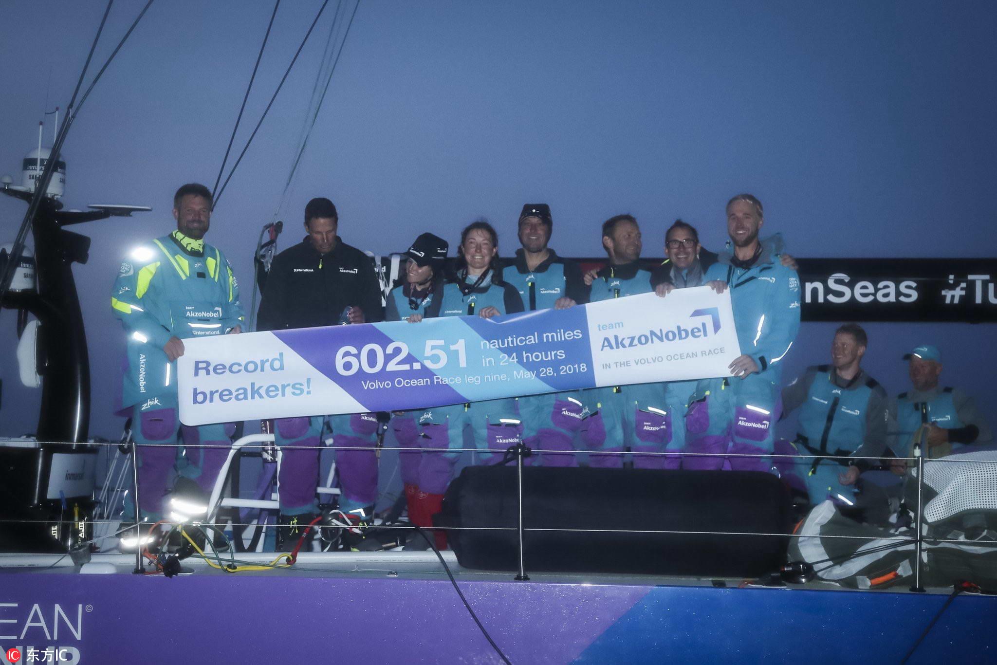 同样来自荷兰的另一支赛队阿克苏诺贝尔队在第九赛段的比赛也相当亮眼。他们在本赛段打破了由爱立信4号在2008年创造的,沃尔沃环球帆船赛24小时航行海里数最多的历史记录,成功创造了新的历史——602.5海里。