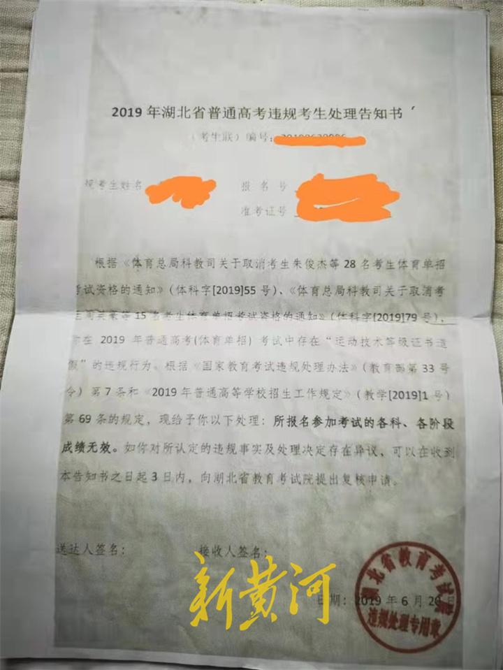 然而,正当一家人满心欢喜地为孩子入学做准备时,2019年6月,湖北省教育考试院发来一张“违规通知”。