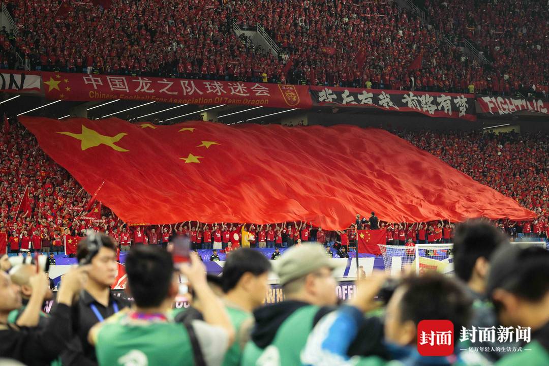 现场球迷拉起国旗TIFO(巨型横幅 )