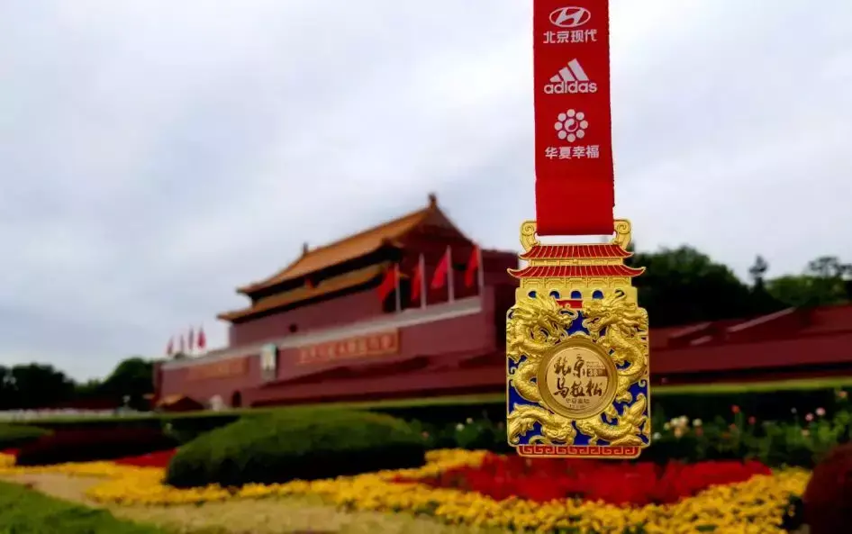点评:从2015年开始,北马的奖牌都是这种设计逻辑,今年的外观改成了方形,配上双龙,非常具有皇家气派。