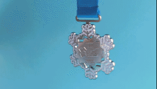点评:雪花造型的奖牌,与比赛主题非常契合,中间是可旋转的,展现雪花的灵动之美。