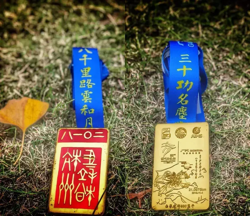 奖牌不仅象征着荣耀,在很长一段时间内,跑马拉松只是少数精英跑者才敢尝试的运动。所以,当你决定去征服它的时候,你已经拥有了无上的勇气,你拿到的奖牌是赐予勇者的勋章。独具匠心的设计也能让你在跑完之后激动、兴奋好一阵子,甚至要咬着奖牌拍照。多年后当你再度回首时,依旧回味无穷!