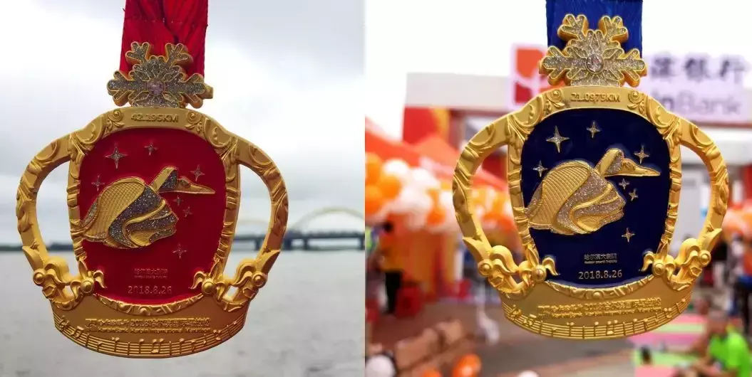 点评:哈尔滨马拉松连续三年的奖牌设计都差不多,明年应该轮到索菲亚教堂了吧。