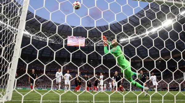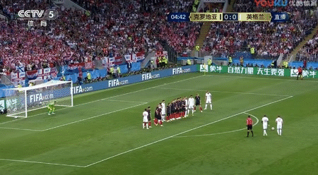 在比赛接近100分钟的时候,英格兰队制造了一次非常有威胁的进攻,斯通斯的头球直挂远角而去,克罗地亚门将鞭长莫及,好在克罗地亚的球员站在了门线处最适合的位置上,用头解围。
