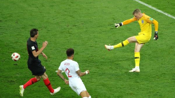 克罗地亚队攻势不减,第72分钟,英格兰后场出现配合失误,佩里西奇禁区前沿拿球,突入禁区后低射圆角,足球击中远门柱弹出,布罗佐维奇补射,足球角度太正被英格兰队门将皮克福德没收。