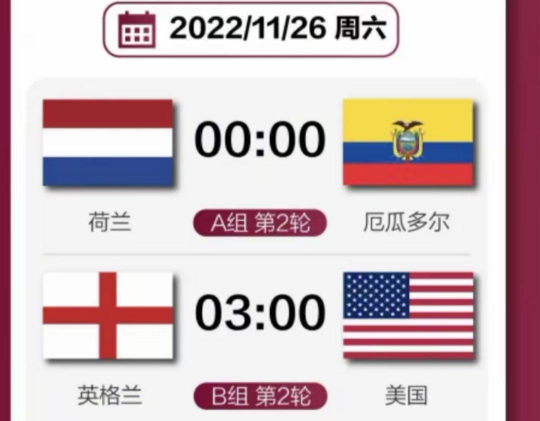 11月26号,凌晨三点,B组迎来第二轮的比赛。美国队对战英格兰,美国队平了威尔士,目前小组积1分,英格兰6比2战胜了伊朗,目前小组积3分,暂居小组第一。