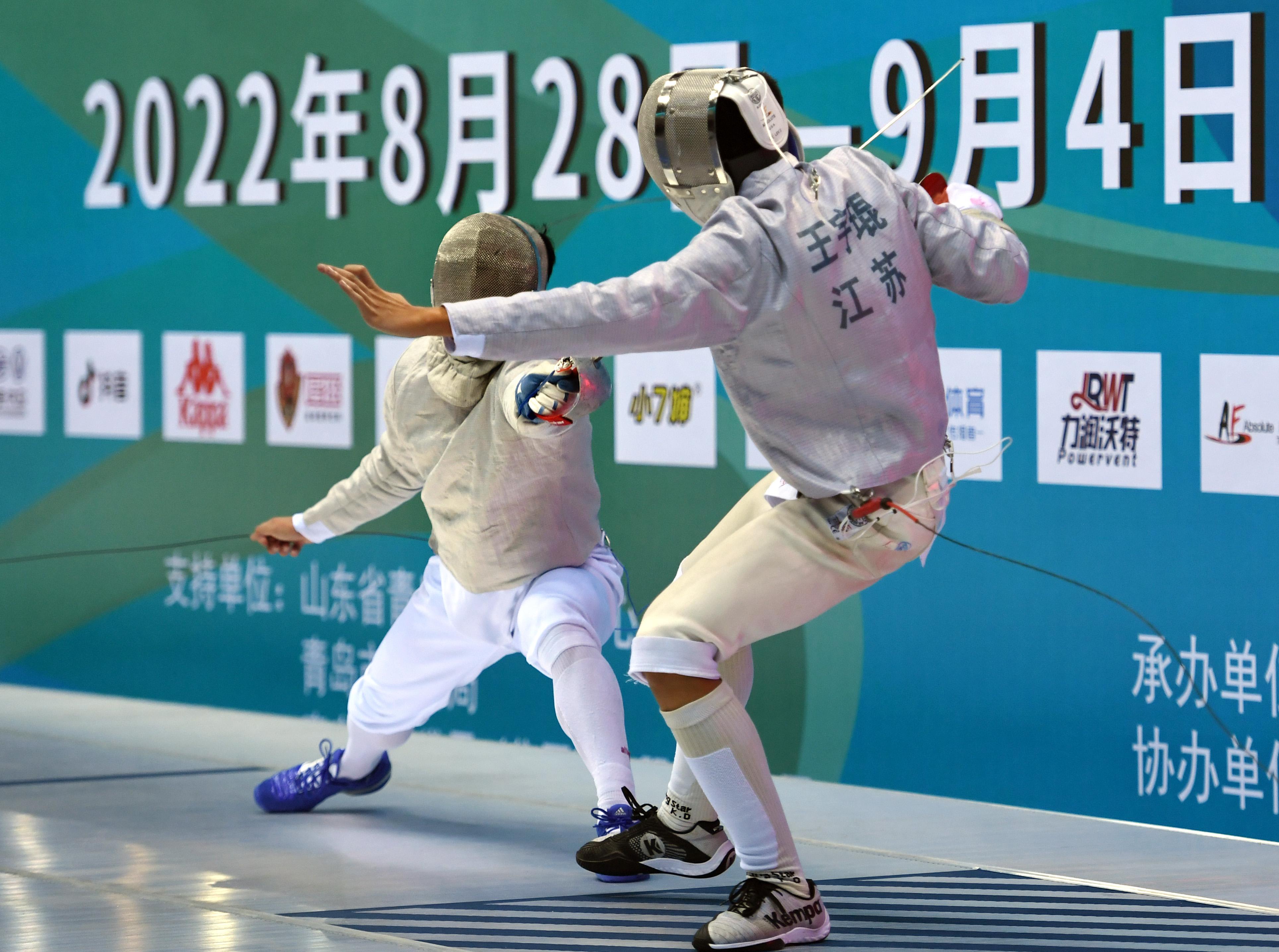 当日,2022年全国击剑冠军赛(青岛站)在青岛市国信体育馆举行。