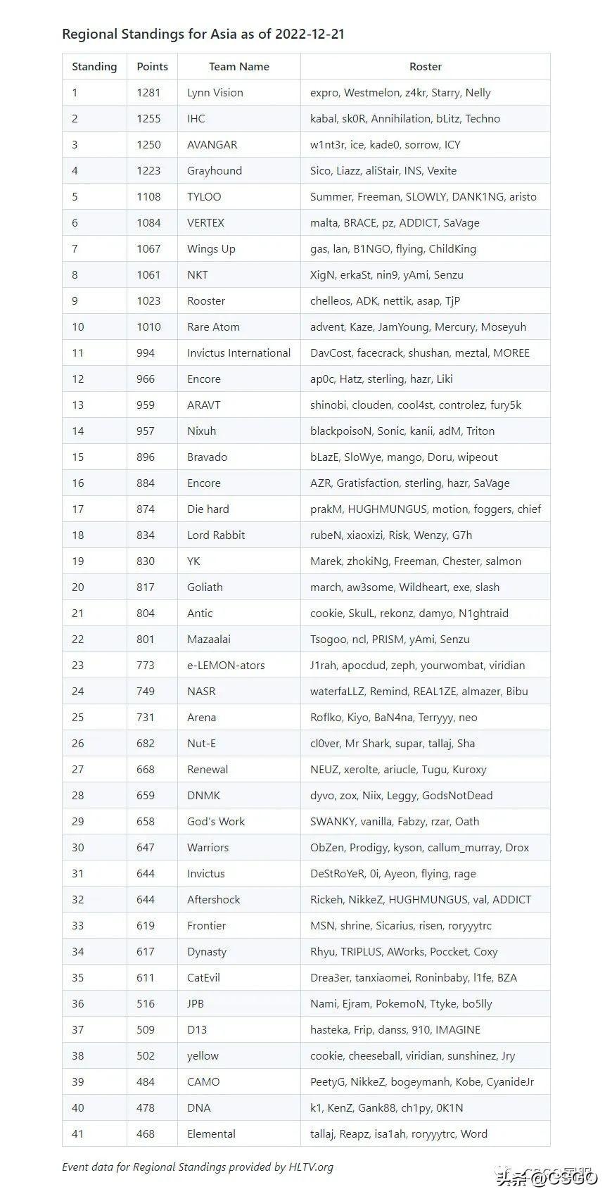 昨天,V社公布了第一版各赛区的战队排名,该排名分为欧洲、美洲和亚洲三个赛区,将被用来决定CS:GO RMR 封闭预选赛的战队邀请。排名基于:战队获得的奖金、被击败对手获得的奖金和战队,以及交锋战果等。目前共有超过300支战队在榜单上,详细榜单如下: