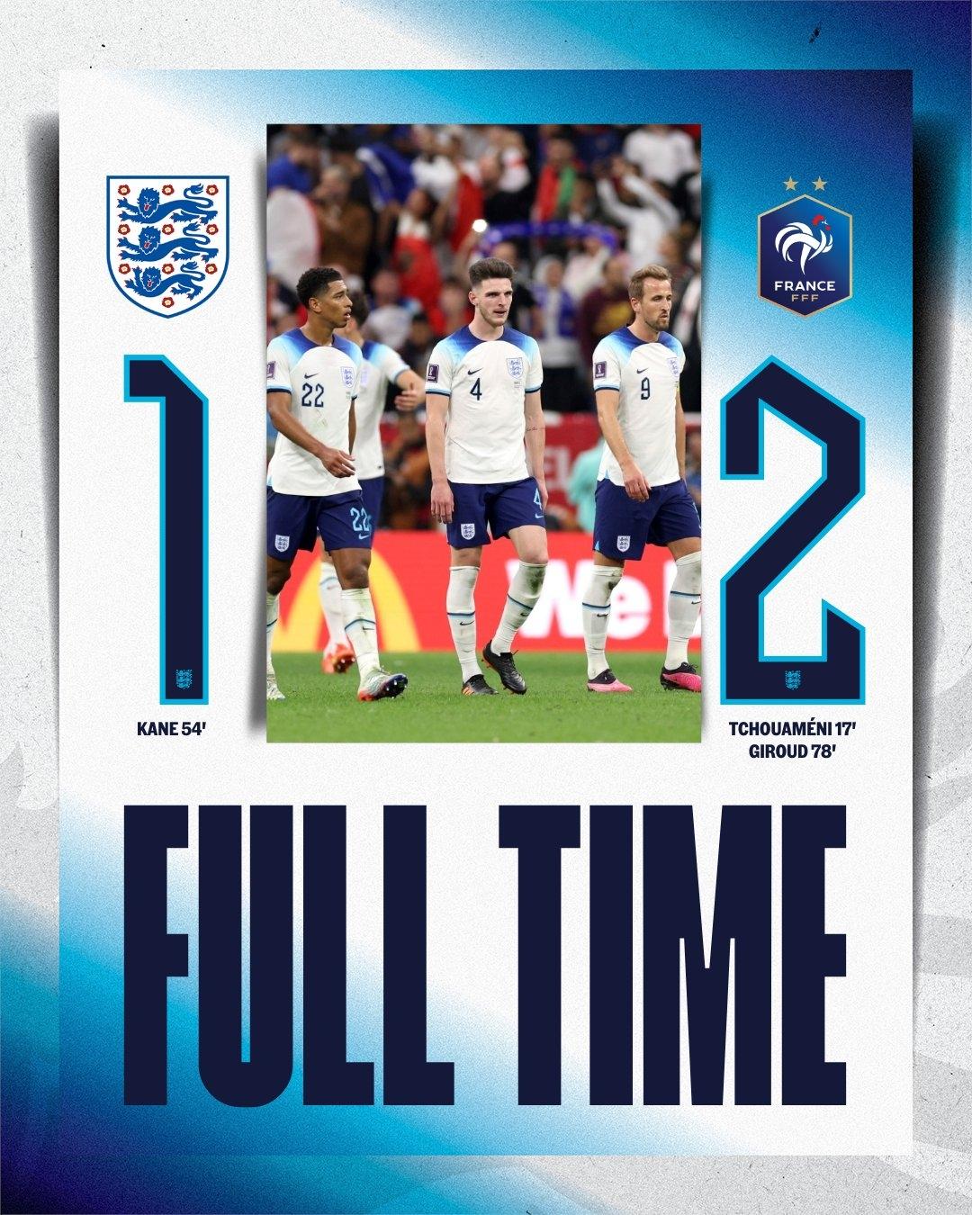 直播吧12月11日讯 世界杯1/4决赛,法国击败英格兰。英格兰遭淘汰,历史第7次止步世界杯八强。