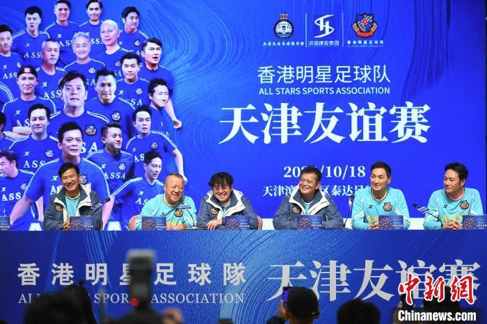 10月18日,香港明星足球队球员在新闻发布会上回答记者提问。记者 佟郁 摄