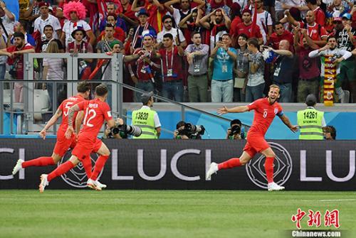 英格兰对突尼斯上半场,凯恩率先入球。中新社记者 毛建军 摄