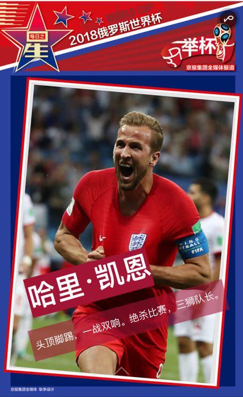 凯恩创造了良好的开局,更是创造了完美的结局。双方战平后,英格兰队久攻不下,直到补时阶段,又是一次角球机会,凯恩接到马奎尔头球摆渡,头球攻门完成绝杀。凯恩成为了1990年之后,首位在世界杯比赛中上演梅开二度的英格兰球员,上一次完成者是传奇射手莱因克尔。打进这2个进球后,凯恩在过去8场国家队比赛中打进11球,效率惊人。