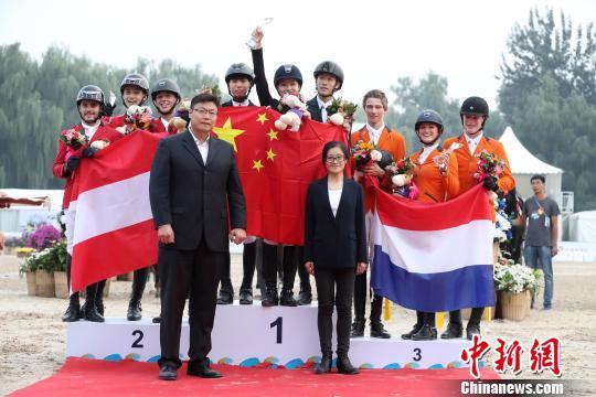 中新网北京9月30日电(邢翀)30日,2017国际马联(FEI)青少年场地障碍赛国家杯赛在北京朝阳公园上演,来自俄罗斯、新加坡、印度尼西亚、奥地利、荷兰、德国、中国七个国家的选手和马匹同场竞技。最终,中国队夺得国家杯赛少年组和青年组双冠军,俄罗斯队、新加坡队分列少年组亚、季军,青年组冠亚军分别由奥地利队、荷兰队获得。
