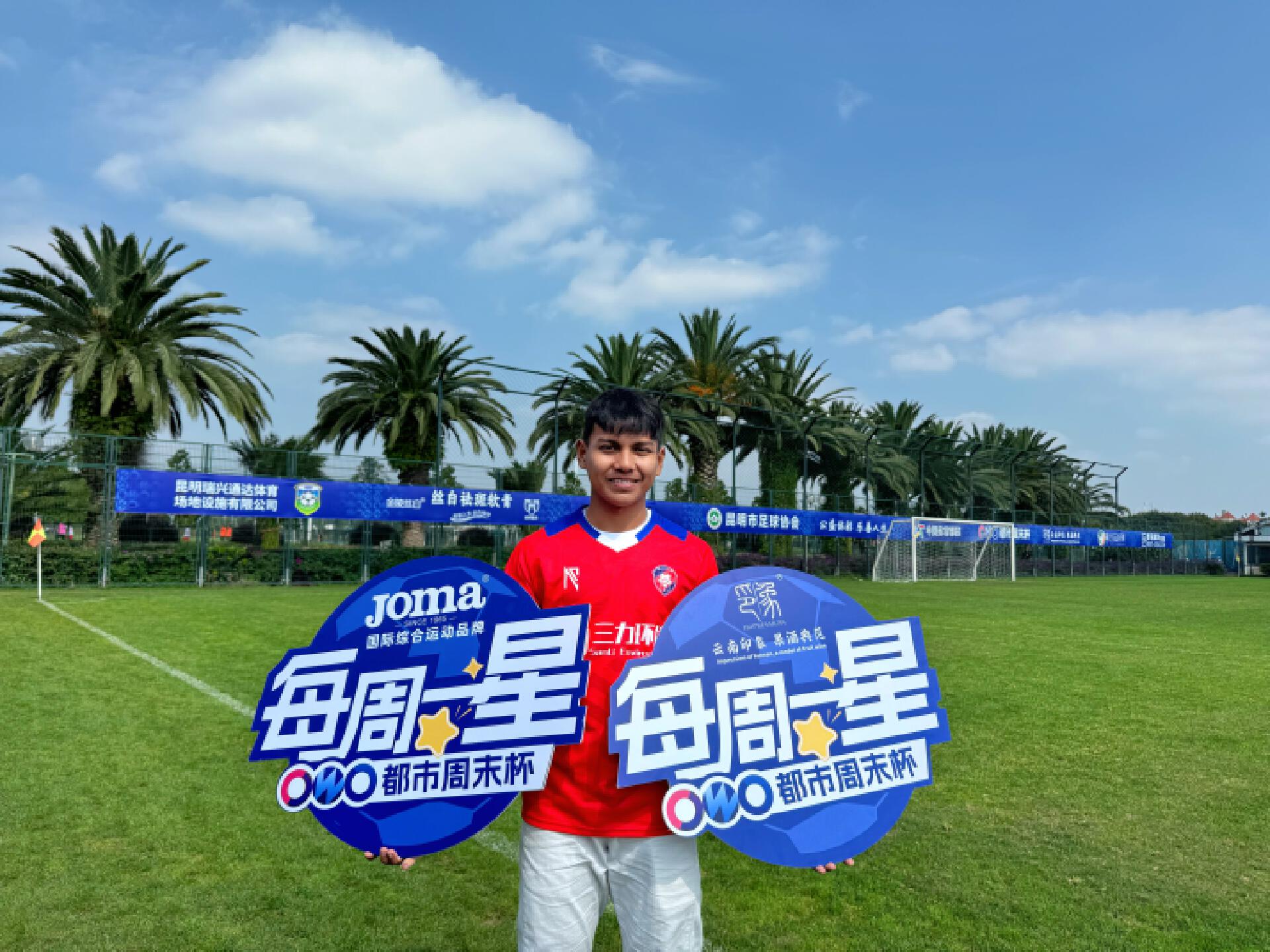 就读于昆明市第八中学的代致远是首次参加都市周末杯,这位16岁的小将首登擂台便成为了赛场上的焦点,竞争激烈的荣耀组小组赛首场比赛中,他以单场进5球的惊艳表现帮助球队一举获胜,书写了属于自己的传奇开场。在接受采访时,代致远难掩兴奋之情,“这次拿到‘每周一星’,对我来说是一种锻炼也是一种荣幸。”