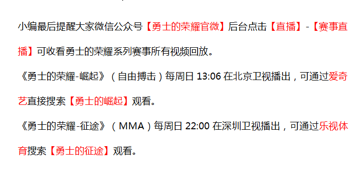 擂台上输赢只在瞬间,但精彩可永恒!每周日晚22:00深圳卫视《勇士的荣耀-征途》,精彩不断,就等你来看!下周日再约!【深圳卫视重播时间:每周一00:20和每周日10:00】