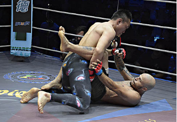 勇士荣耀联盟品懿春秋俱乐部“魔童”崔刘才在昨晚强势亮相,对阵巴西柔术黑带选手蒂亚戈·德·帕拉丝毫没有胆怯!激烈的对攻:勾腿折腰、骑乘砸击、裸绞、逆袈裟等等巴西柔术连番上演,在第三回合,崔刘才一举将对手摔倒,以木村锁降服对手获胜!干净利索的为中国综合格斗扬眉吐气一把!