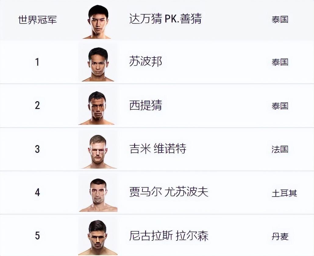 达万猜在踢拳赛场的表现如何还是个未知数,但前羽量级踢拳世界冠军苏波邦已经觊觎他的泰拳世界冠军金腰带了。自从被阿拉佐夫重拳KO,丢掉了踢拳世界冠军金腰带后,苏波邦用一场漂亮的胜利证明了自己的实力。“ONE:巅峰系列赛11”中,苏波邦在仑披尼竞技场观众的助威声中,抓住对手攻防转换的瞬间漏洞,用一记标志性的高扫腿KO了级别排名第五的“毒蛇”泰范-霍斯坎(Tayfun Ozcan),赢得五万美金花红。