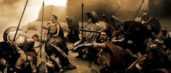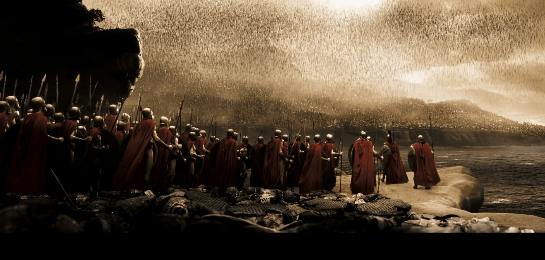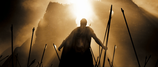 影片随处可见的慢镜头与沉重灰暗色调结合,才更加服务烘托出斯巴达一行人舍身取义的悲壮感。