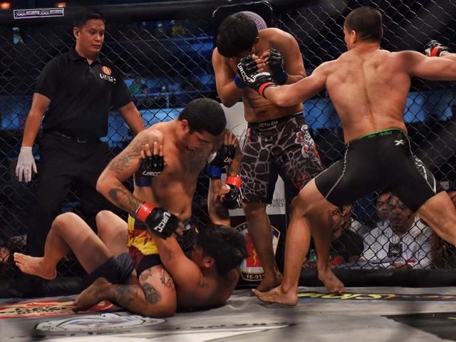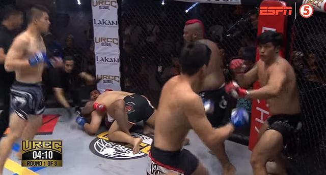 不久前,在菲律宾某格斗赛事URCC 77中上演了一场匪夷所思的比赛,不仅比赛规则奇葩,最终结局是更加难以理解。这是一场3对3的MMA比赛,中国队对菲律宾队争夺金腰带。最终中国队在被对手恶意犯规击打后脑的情况下,惨遭判负,菲律宾人却跳起了尬舞。