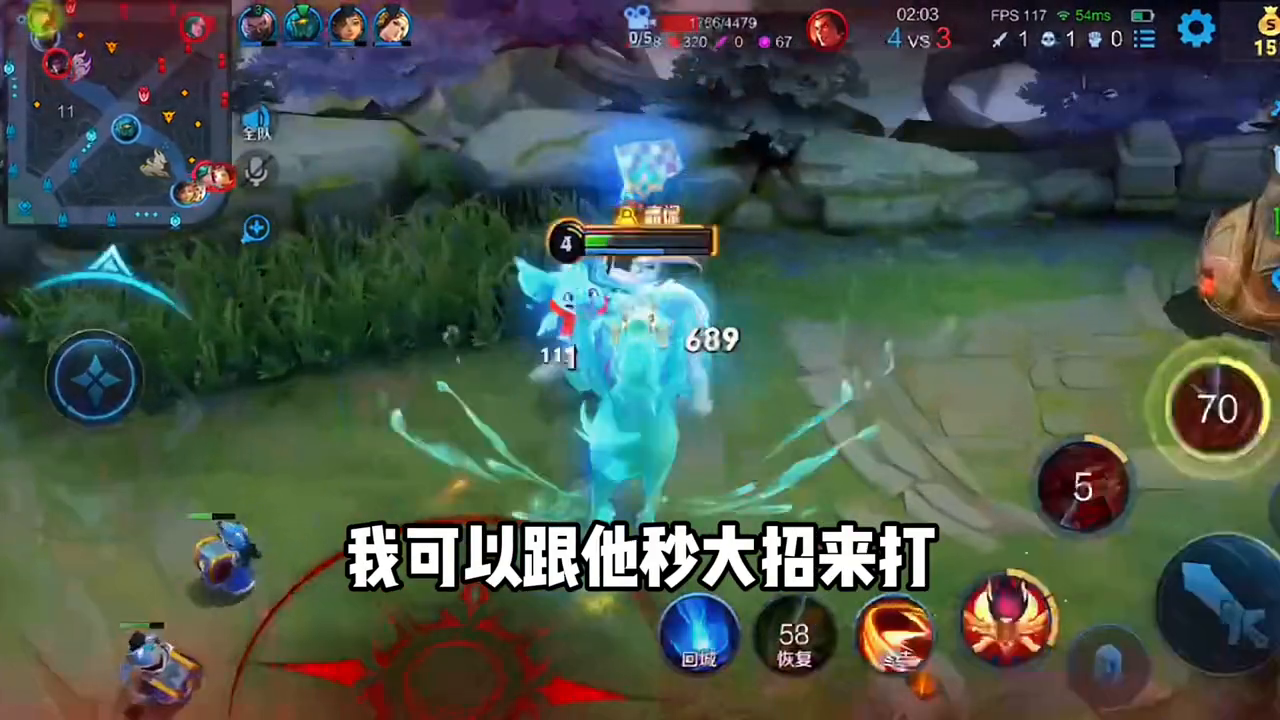 经济相同的情况下,哪吒打司马懿就是说谁先手谁就赢,这里看到他用这个影子过来了,然后他想传送走,一技能a一下,二技能打断秒开大招。他想跑的时候,大招锁定直接过来一技能斩杀,就算没有斩杀掉也没有关系,因为你把对面打野状态打残了,他要断节奏的。