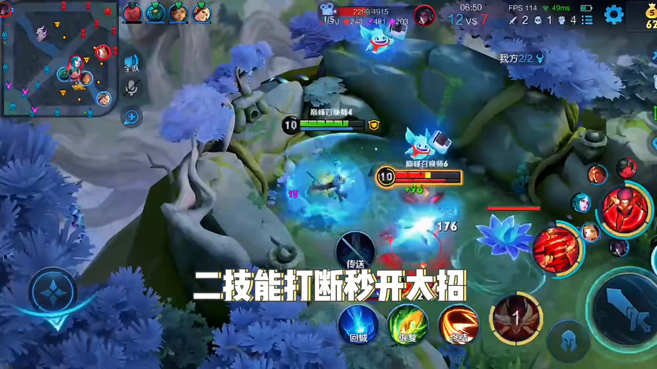 回来之后就是说到我前面说的,利用对抗路的草丛,木兰过来时候他知道我在这里吗?他不知道,等他进到草的时候他技能交完了,他这个状态想走走不掉了。这种击杀跟操作没有多大的关系,主要就是草丛这个视野利用的好。就是想不到的这种操作。