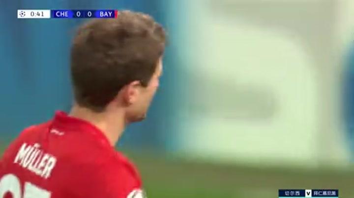 第29分钟,穆勒禁区前沿直接起脚搓射远角,球擦右侧立柱偏出。↓