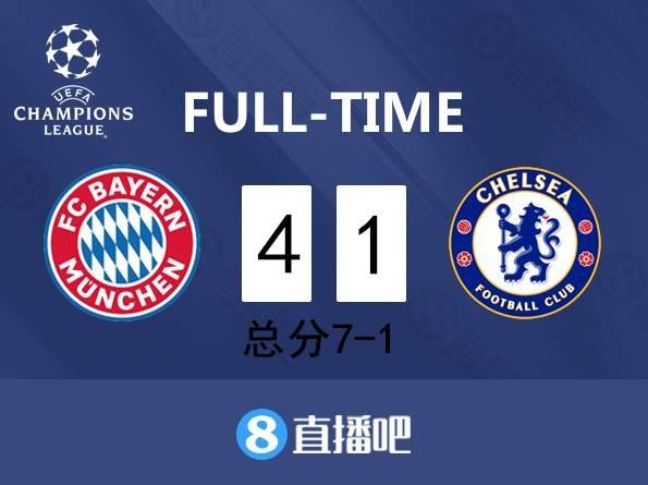 最终,拜仁慕尼黑4-1切尔西,总比分拜仁7-1切尔西晋级。
