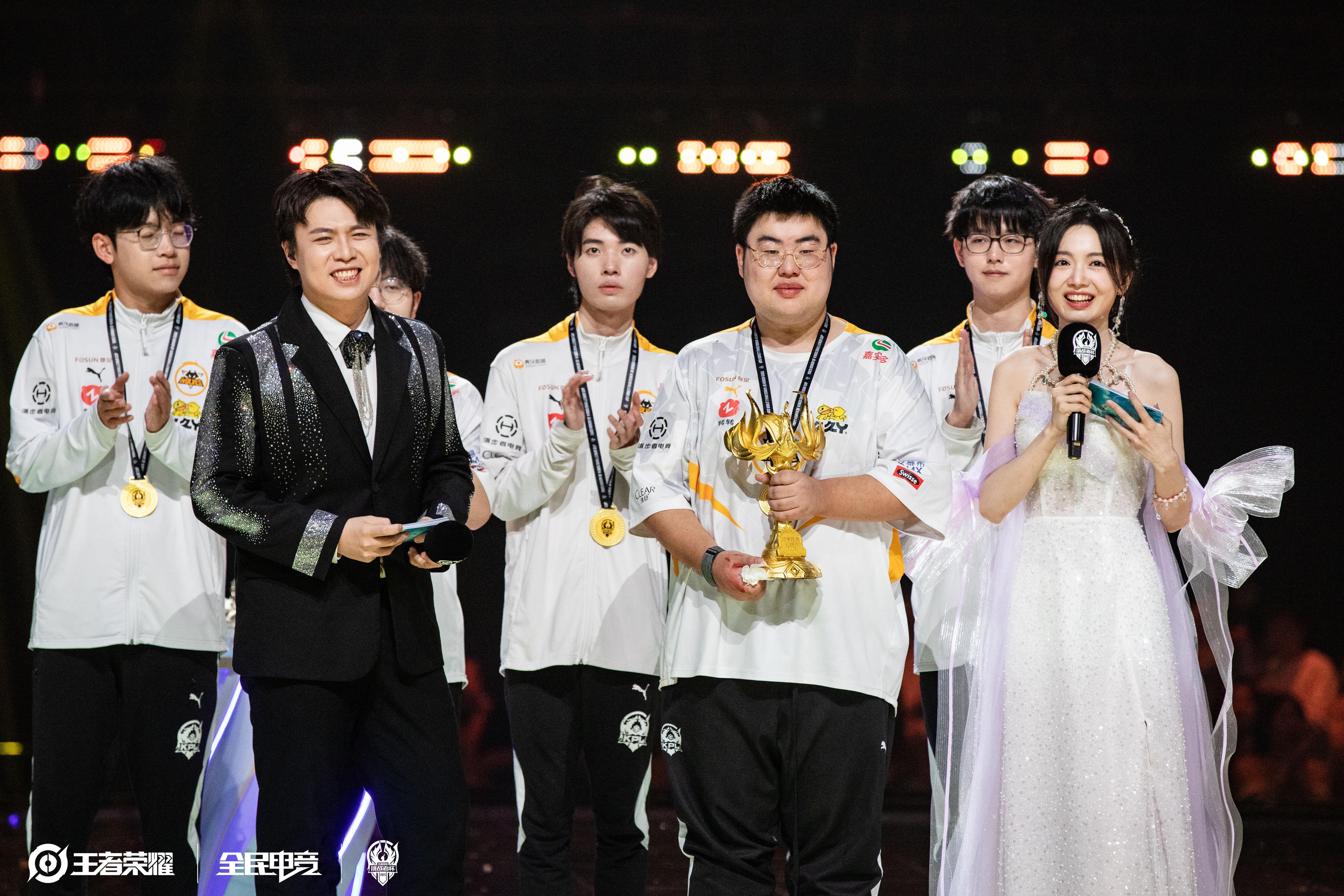 重庆狼队的小胖凭借出色的表现当选FMVP,将获得为其定制的挑战者杯FMVP英雄皮肤。