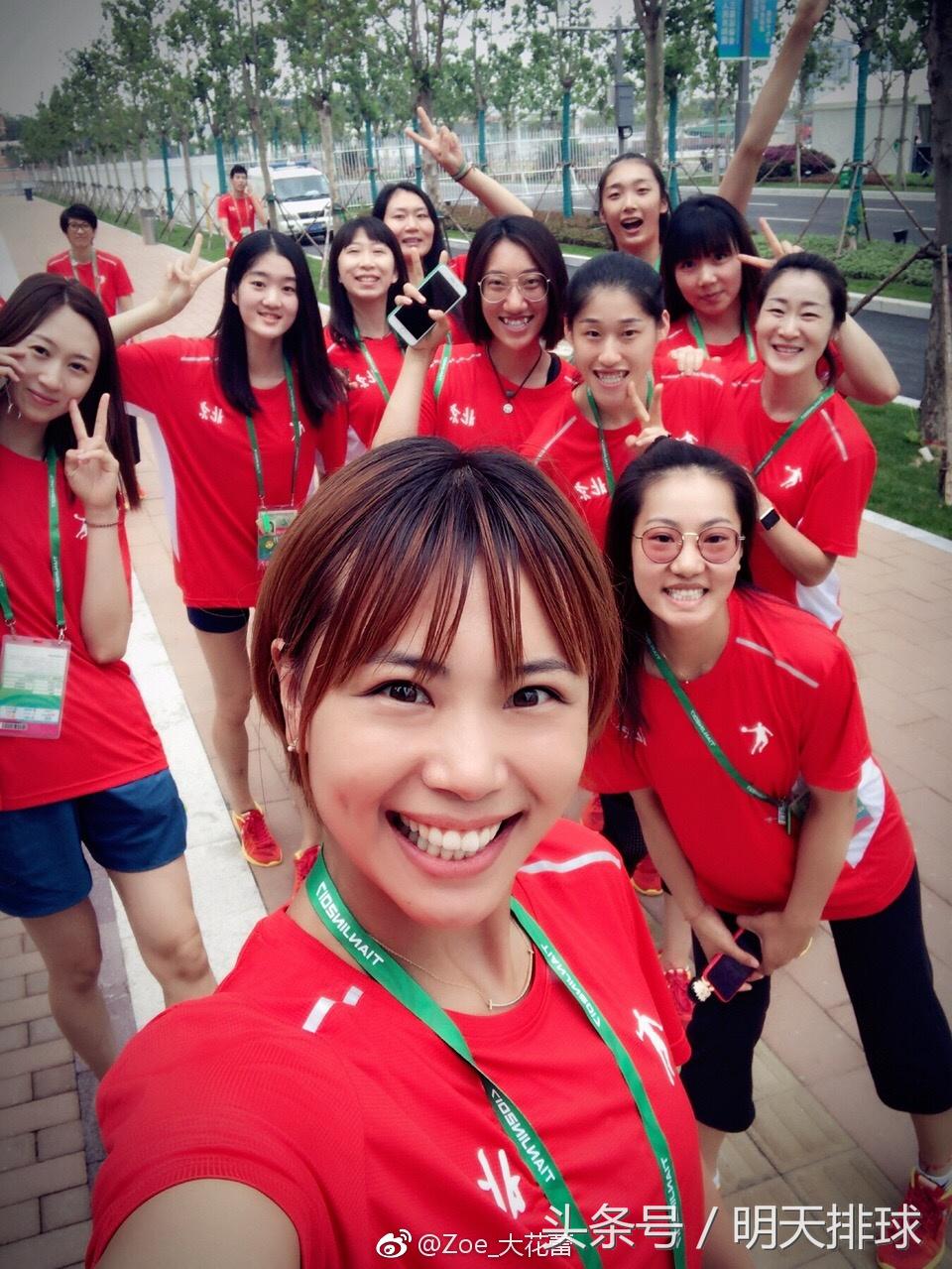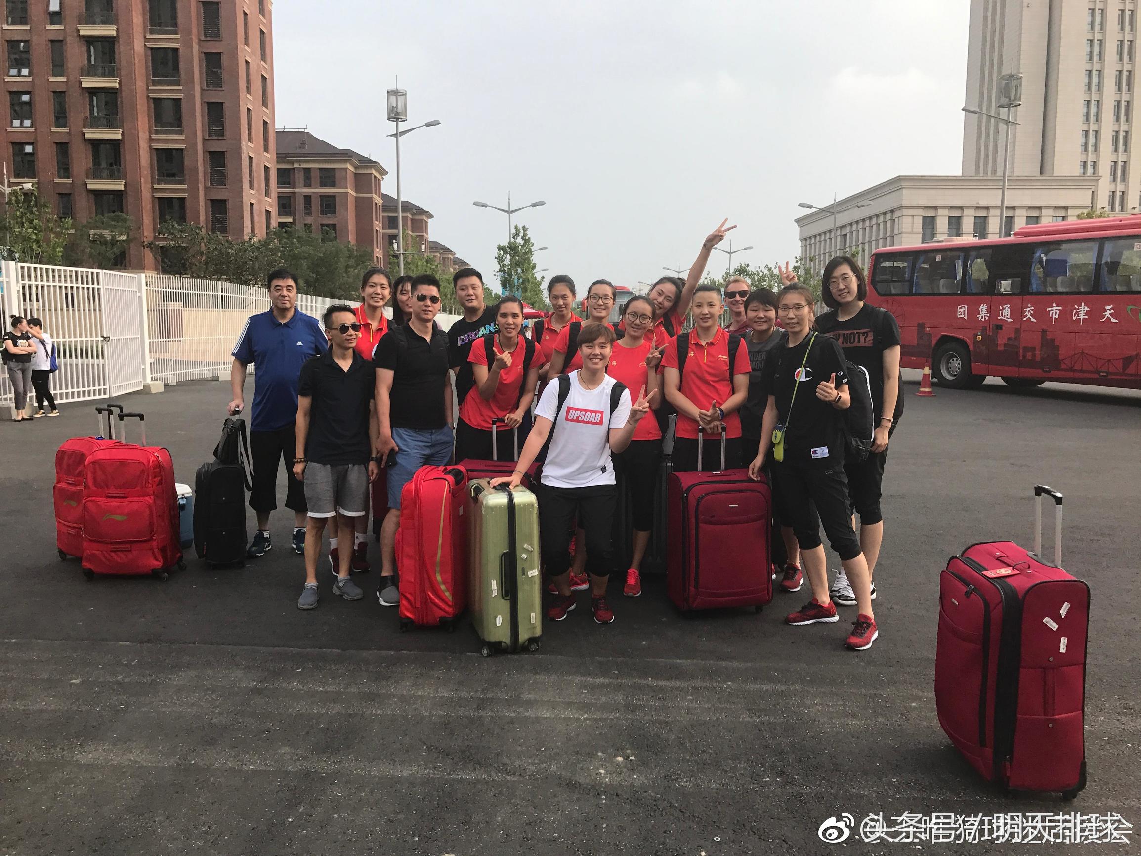 参加全运会女排比赛的北京女排今天已经进“村”(来源:曾春蕾的微博)