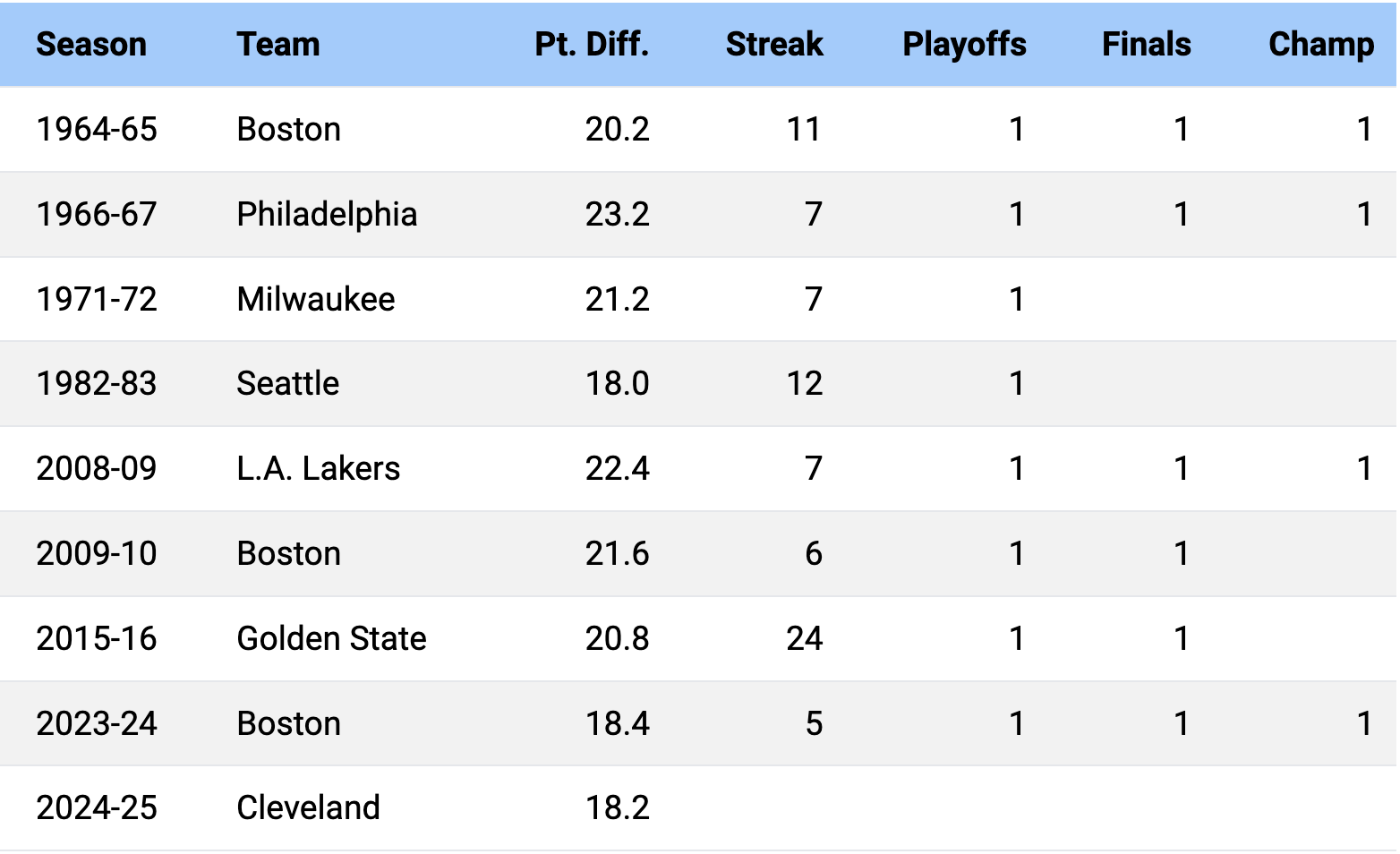 7、骑士成为NBA历史上第九支场均净胜至少18分、开赛5胜0负的球队