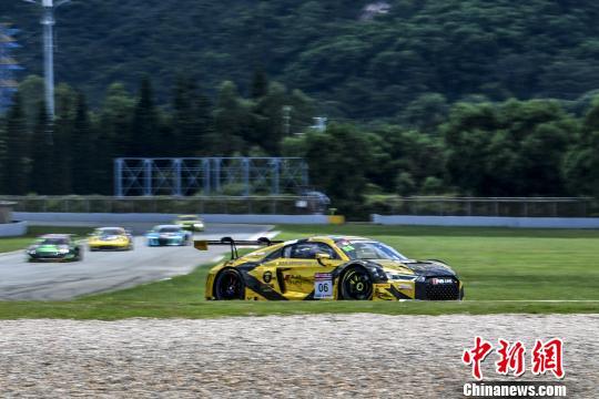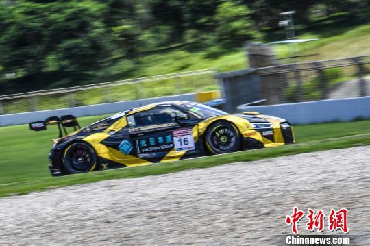 7月9日,由香港车手卢彪/毛俊豪驾驶的16号奥迪R8赛车驰骋在赛道上。 陈骥旻 摄