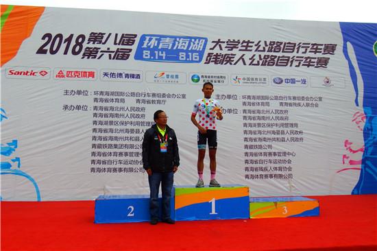 第三赛段从青海湖二郎剑景区出发,终点设在青海湖南山顶,共7.2千米。本赛段为全程爬坡,海拔从3256米骤然上升至3717米,雨水和高海拔带来的低温缺氧让当天的比赛变身为“极限挑战赛段”,为一众车手留下了难忘的记忆。最终,广东东莞理工学院的陈寅正斩获赛段冠军并收获象征爬坡王的圆点衫和冲刺王的绿衫,戴珞穿上黄衫,成为本届赛事个人总冠军。团体方面,江汉大学、内蒙古师范大学、甘肃农业大学分列团体积分榜前三位。残疾人比赛中,青海省一队多日杰夺得冠军,将笑容留在南山顶上。