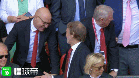 第44分钟,弗爵、拉爵以及格雷泽坐镇看台