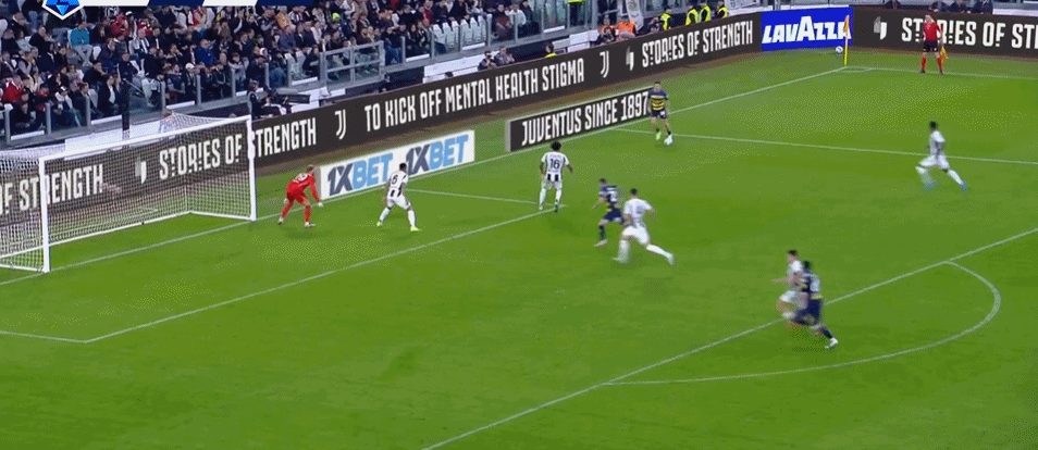 第69分钟,尤文左路传中,皮球被门将扑出底线