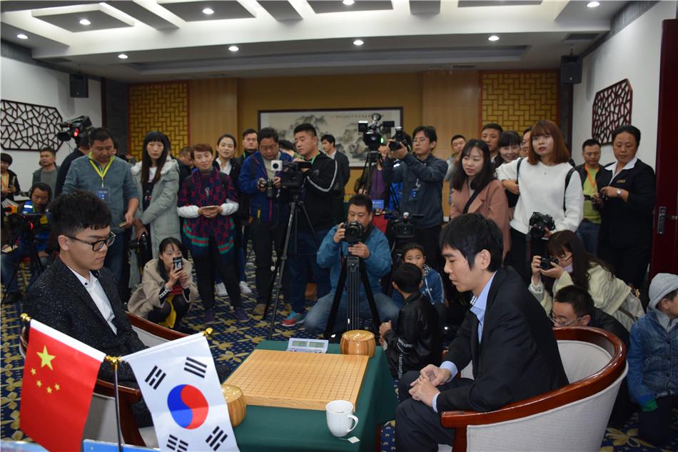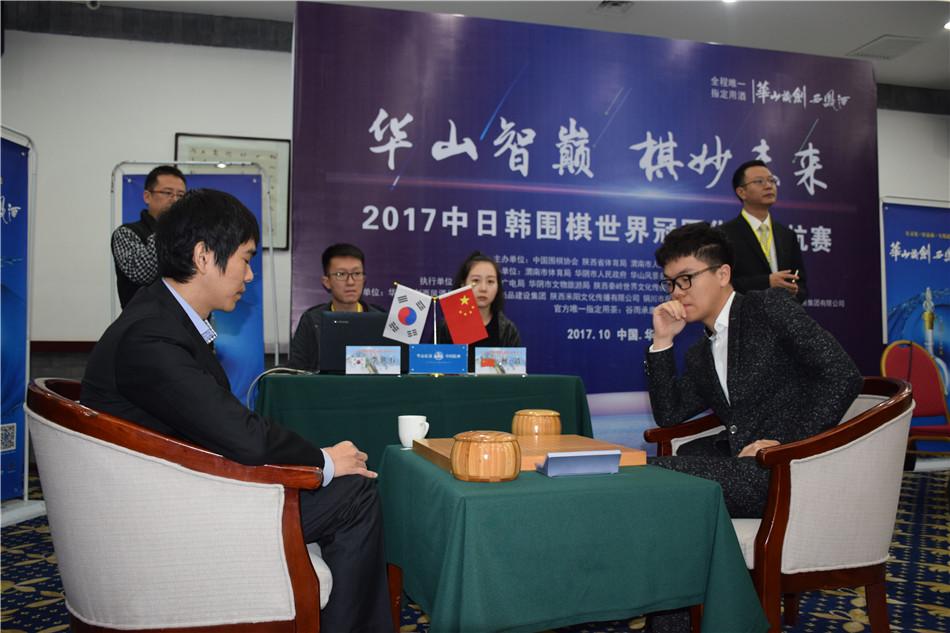 10月25日,2017中国(华山)国际围棋大会中日韩对抗赛半决赛在华山客栈打响,柯洁对决李世石,周睿羊对决河野林。(摄影:戴一鸣)