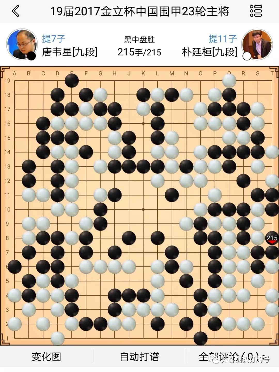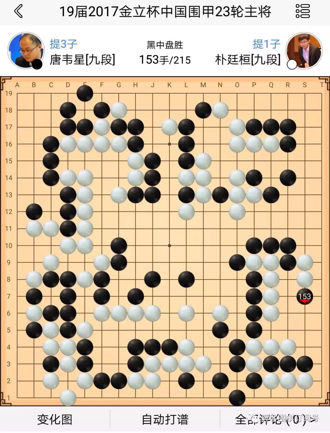 第19届2017“金立杯”中国围甲第23轮唐韦星执黑中盘胜朴廷桓