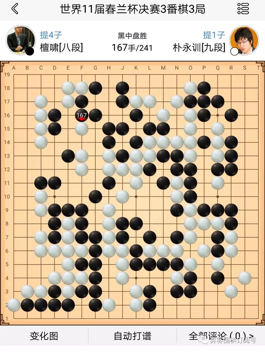 第11届“春兰杯”世界围棋公开赛决赛檀啸执黑中盘胜朴永训