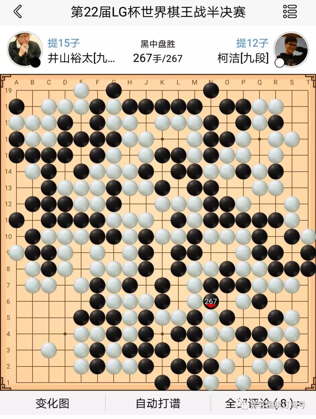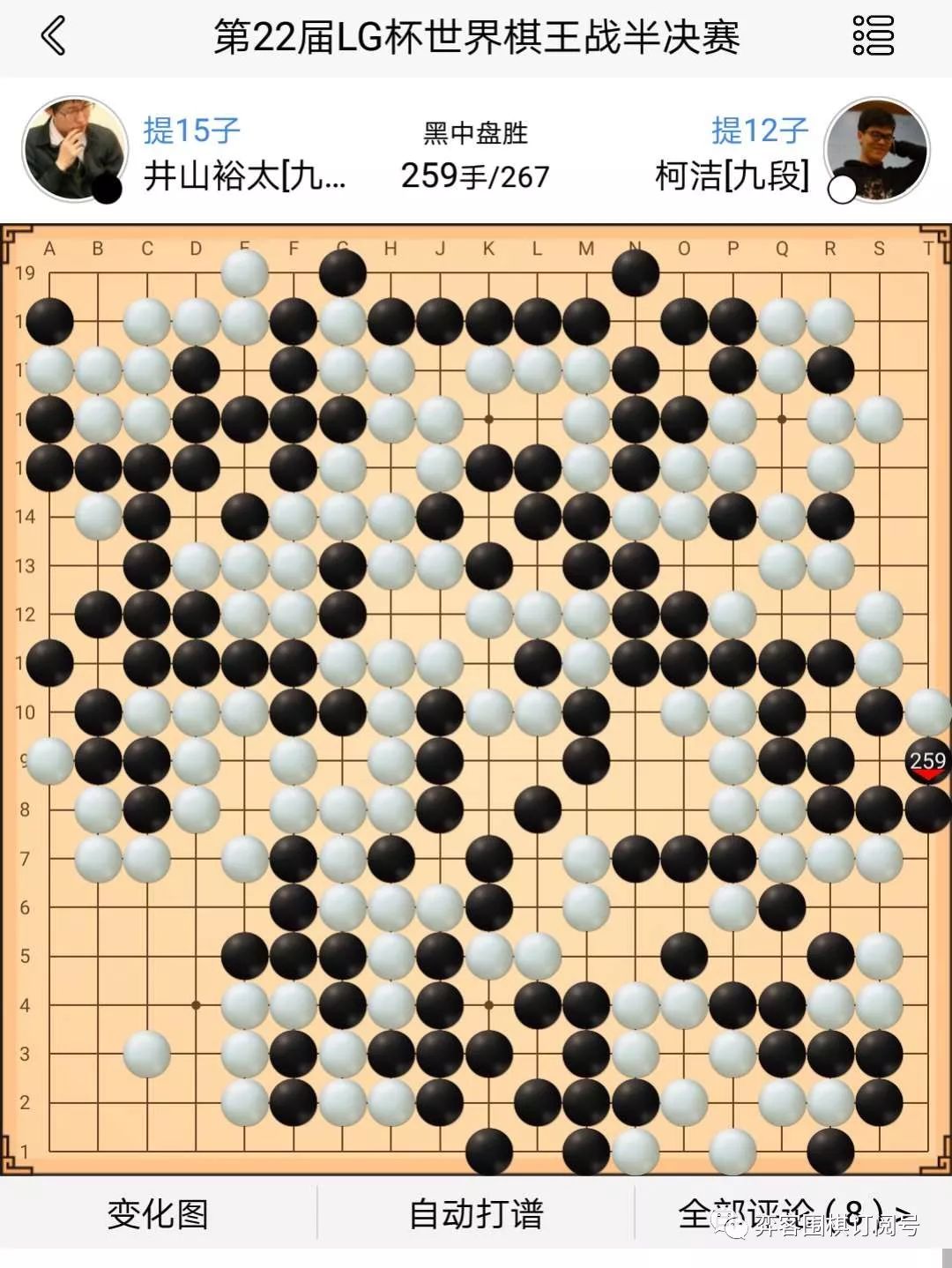 第22劫届LG杯世界棋王赛半决赛井山裕太执黑中盘胜柯洁