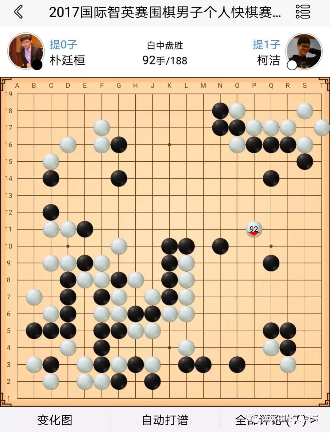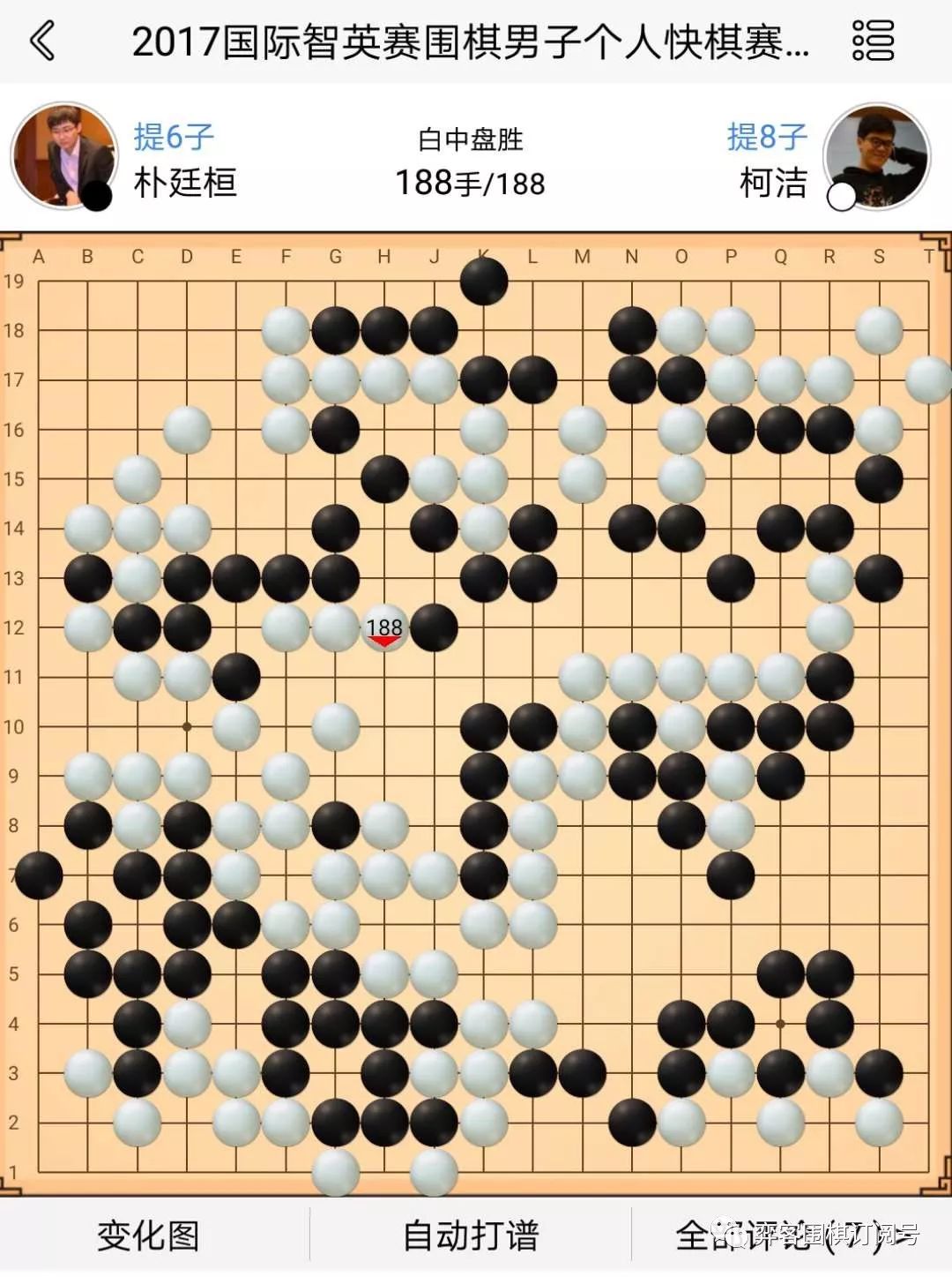2017国际智英赛围棋男子个人快棋赛决赛柯洁执白中盘胜朴廷桓
