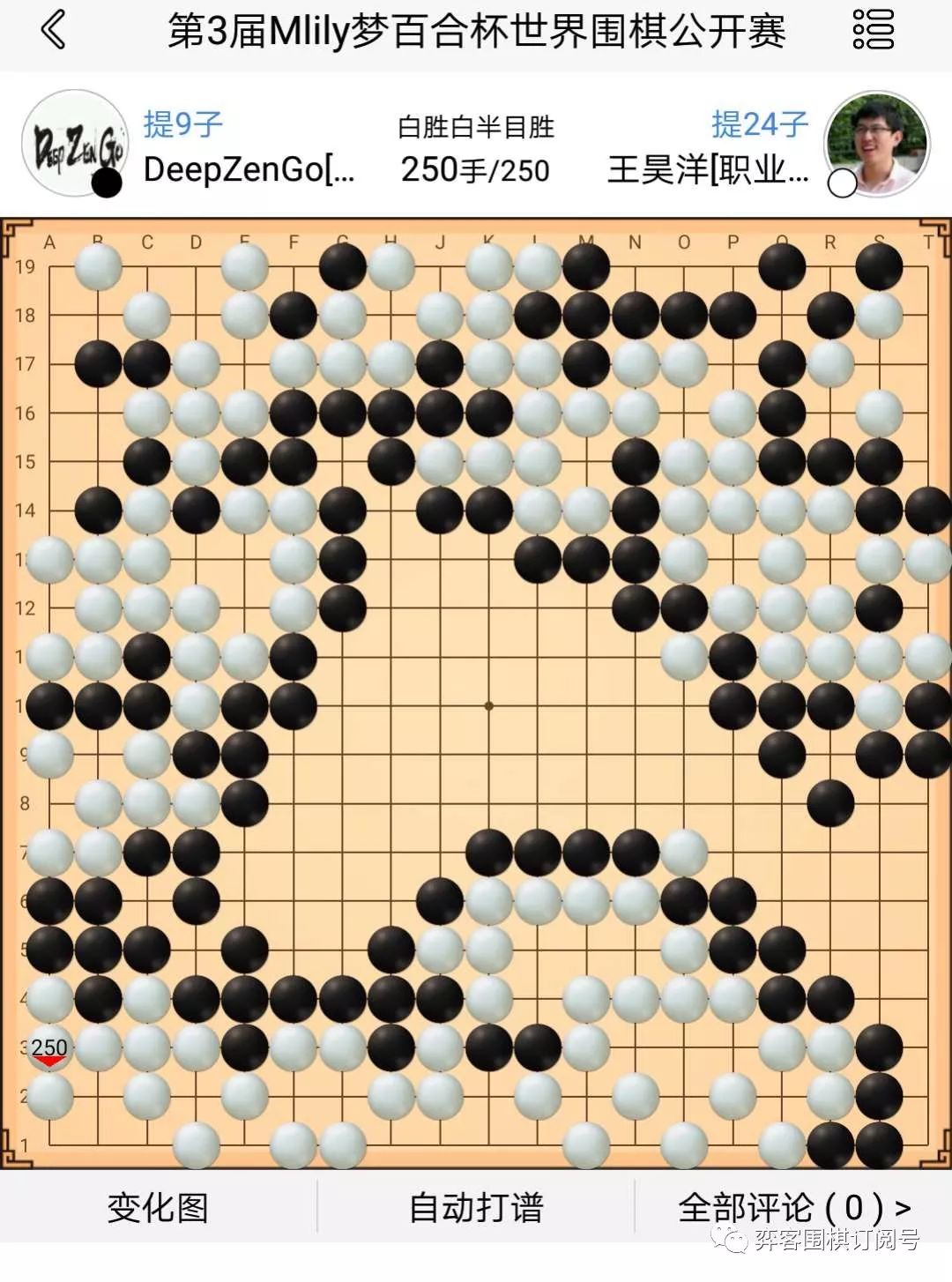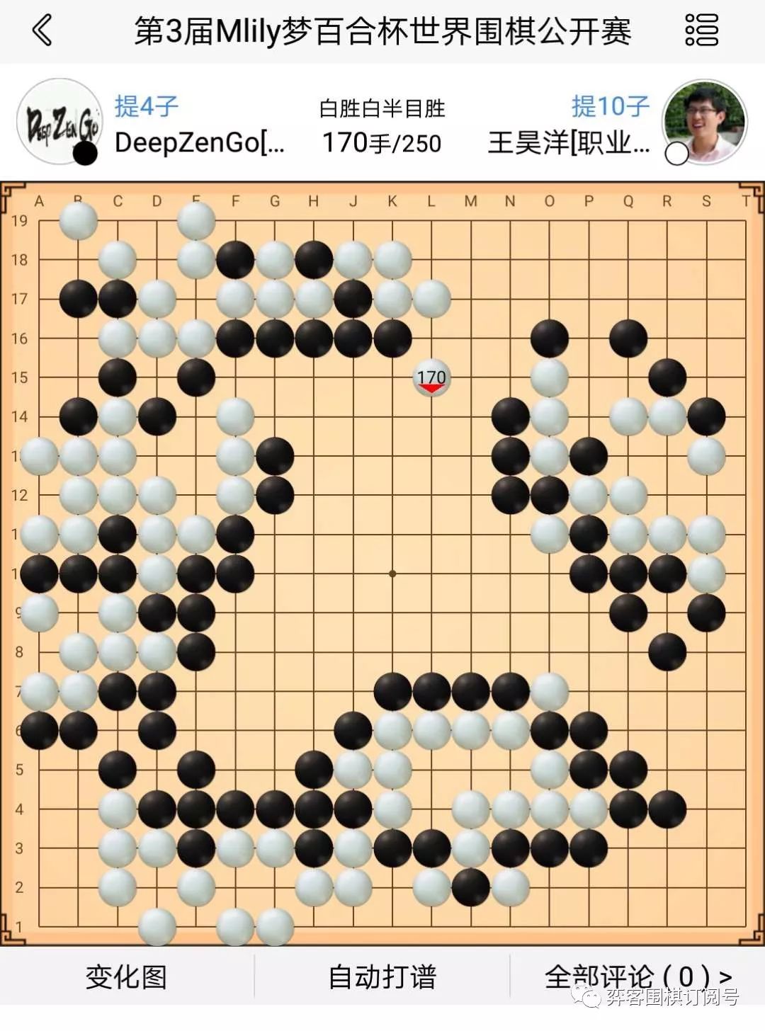 第三届Mlily梦百合杯世界围棋公开赛32强王昊洋执白半目胜DeepZenGo