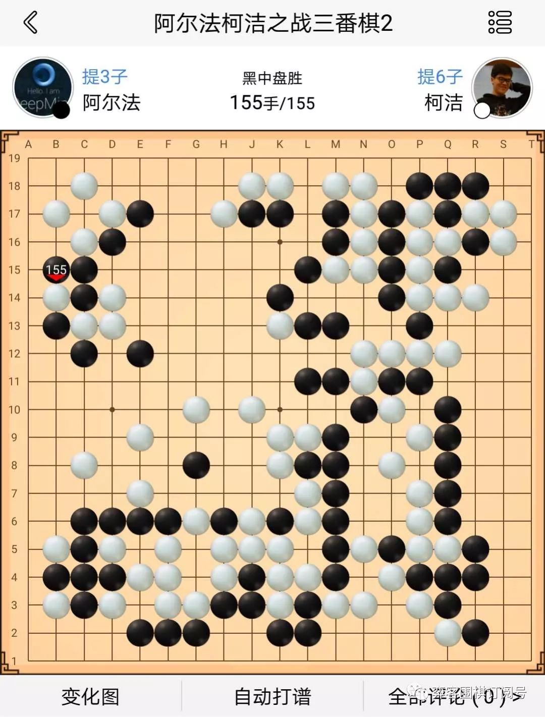 人机战柯洁AlphaGo三番棋第二局AlphaGo执黑中盘胜柯洁