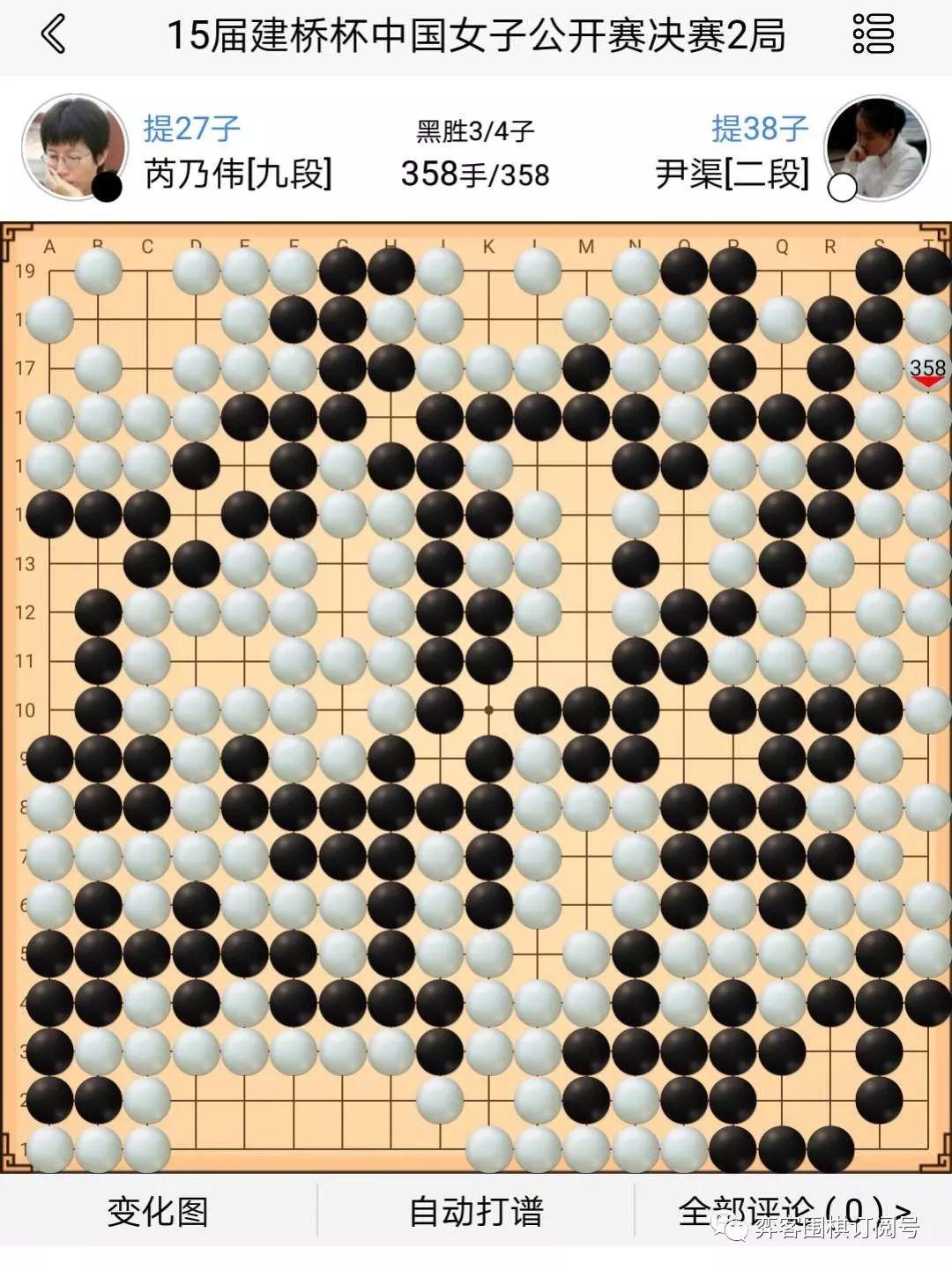 第15届“建桥杯”中国女子公开赛决赛第2局芮乃伟执黑3/4子胜尹渠