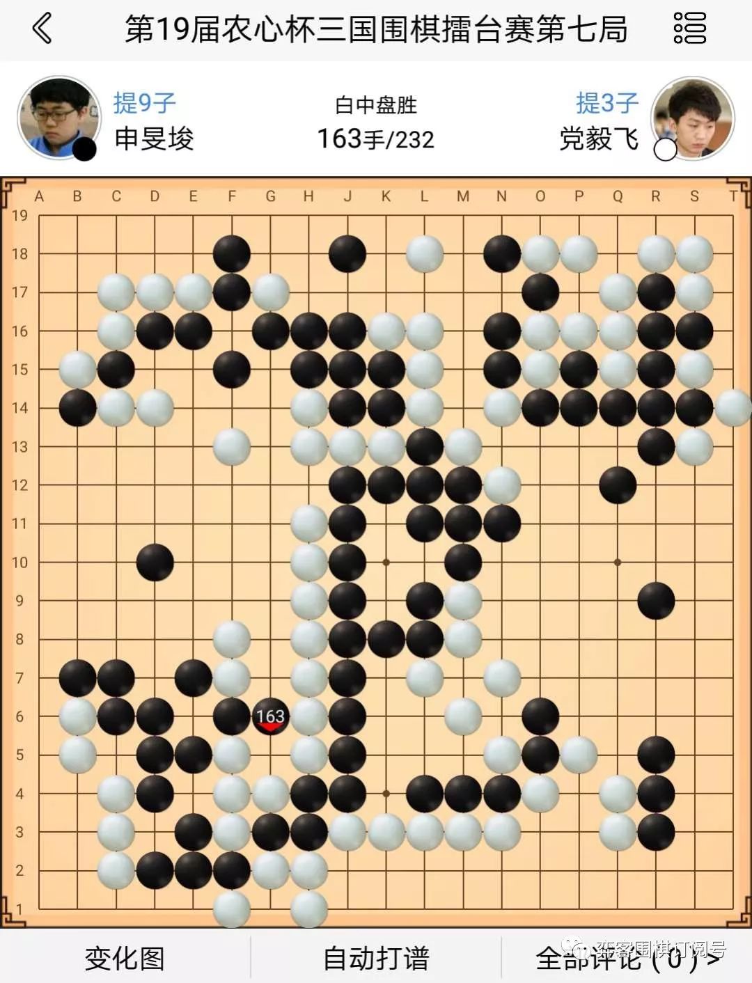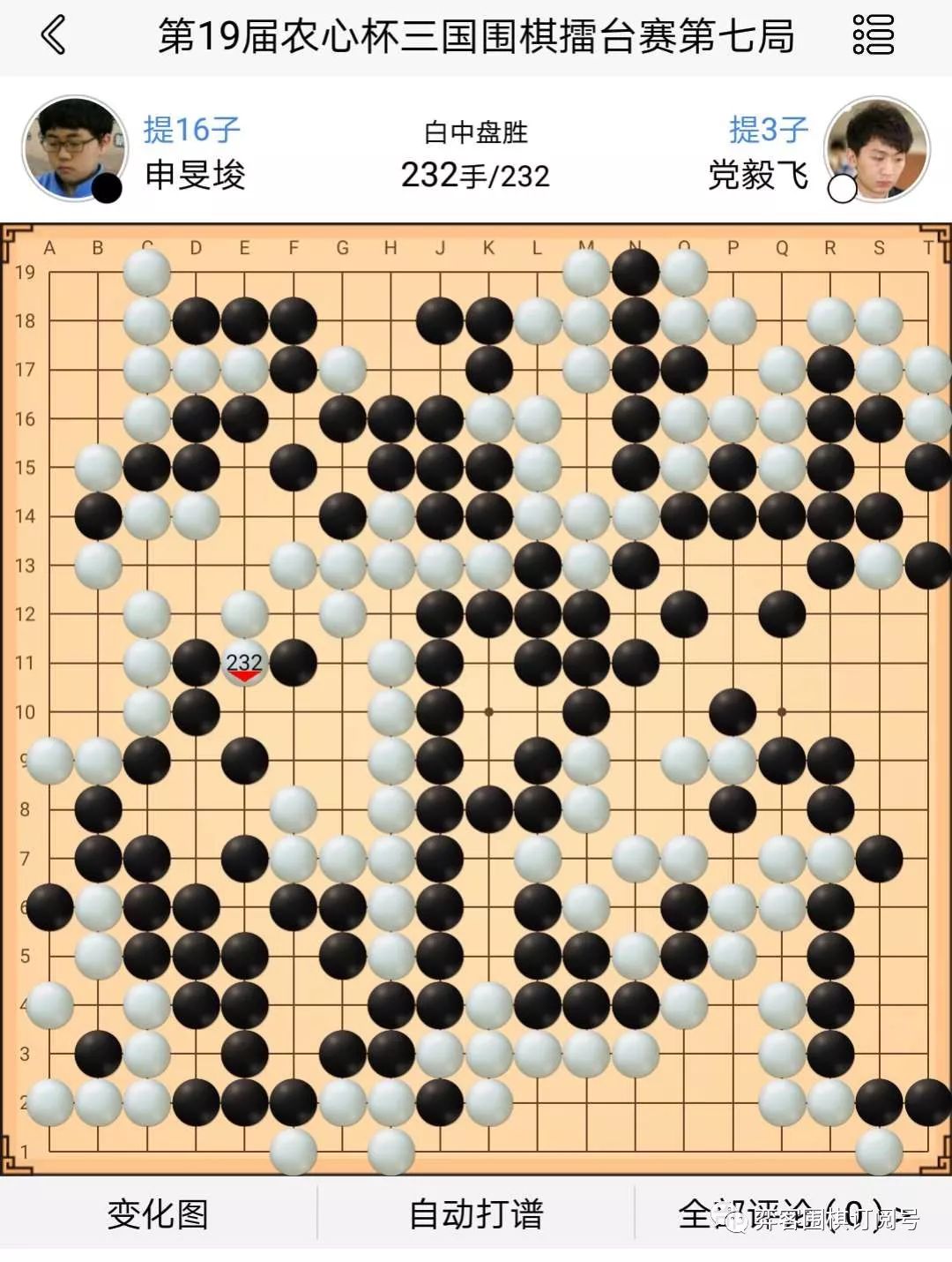 第19届农心杯三国围棋擂台赛第七局党毅飞执白中盘胜申旻埈